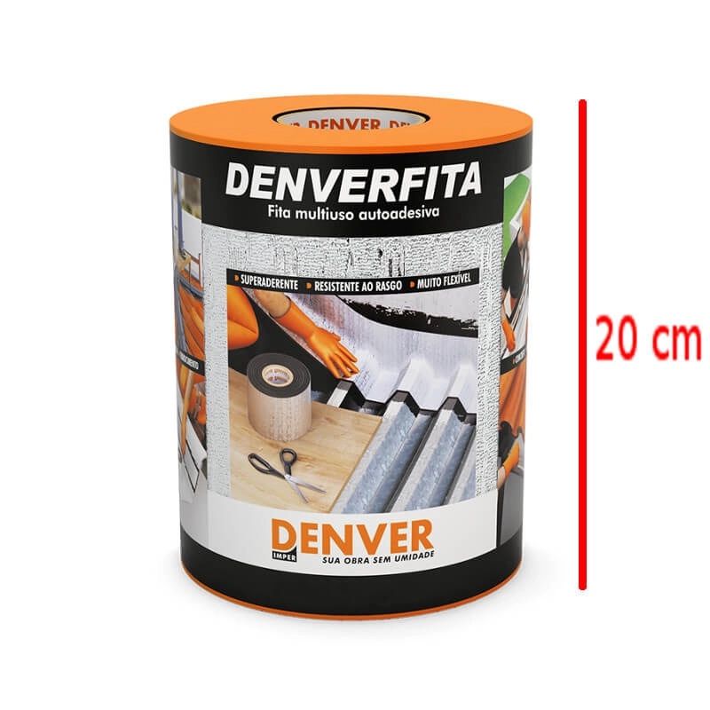 DENVERFITA é uma fita asfáltica para vedação e reparos em diversas aplicações. Composta por adesivo de asfalto elastomérico e acabamento em filme aluminizado. DENVERFITA é a solução rápida e fácil para goteiras e infiltrações de telhados e calhas, possui alto poder de aderência em diversos tipos de materiais como, fibrocimentos, argamassas, concretos e metais. Ideal para: Vedar trincas e frestas entre telhas, rufos, cumeeiras e cabeças de parafusos expostos; Fechar vãos e frestas em instalações elétricas, hidráulicas, de ar e/ou sistema de ventilação; Reparar carrocerias de caminhões tipo baú, furgões ou em lonas e toldos trincados. VANTAGENS : Super aderente Resistente ao rasgo Muito flexível Rápida e fácil instalação; Resistente à exposição solar e intempéries; Ótima aderência em superfícies metálicas ou superfícies porosas com uso de primer; Pode ser utilizada como barreira de vapor. Composição básica :Asfalto Cor : Alumínio Tamanho: Largura : 20 cm Comprimento: 10 m